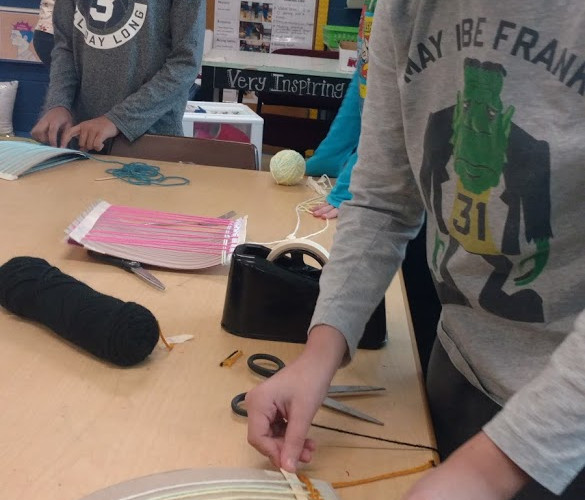 Fifth graders have finished their last in-class day of weaving! Students are finding weaving takes STAMINA! Because this project takes awhile, we will be working on this here and there throughout the school year. Some students will decide to keep going with weaving and others will work in their sketchbooks. I am proud of them for giving it a try!