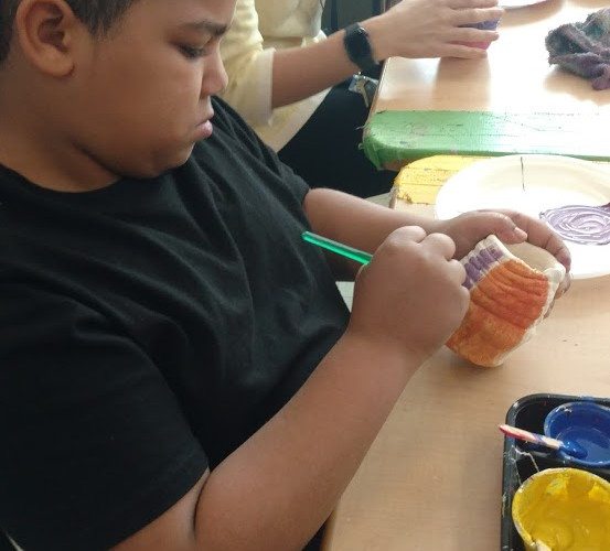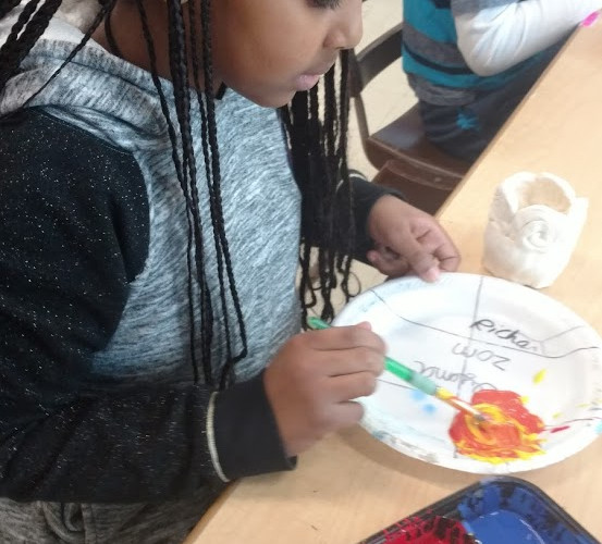 Third graders had another day of color mixing! I've been trying to teach this earlier and earlier to our younger grades and they did so well! I think they all know which colors make which colors now! Ask them about the PRIMARY COLORS and the SECONDARY COLORS! This week they painted on their clay pots!