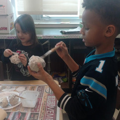 Fourth graders are creating paper mache monsters! We read the book Leonardo the Terrible Monster about a monster who was told he had to be scary, but just couldn't be. We talked about what stereotypes are and that it's important to break stereotypes, especially if it is at the expense of making someone feel bad. We discovered Leonardo didn't need to be scary just because everyone thought he should be, but that he could be kind and be a good friend. So 4th graders are creating monsters that defy stereotypes and are creating silly monsters with big personalities for our Monster world!