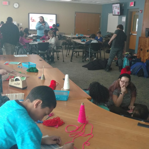 I figured the day before February break would be the perfect day for a "Weave-In"! A weave-in is kind of like a read-in, but with weaving instead of reading! 5th graders got together today in our Large Group Instruction room and socialized, relaxed and worked on their weaving projects together as a group! It's nice to create art together outside of art class, where we are usually so busy trying to accomplish many things in such a short period of time. Thanks to Mr. Hiley for letting us do this today!